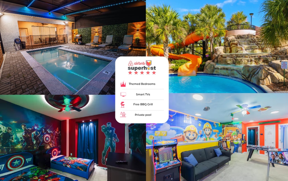 DisneyWorld 15min!Themed 4 BD home w/private pool!