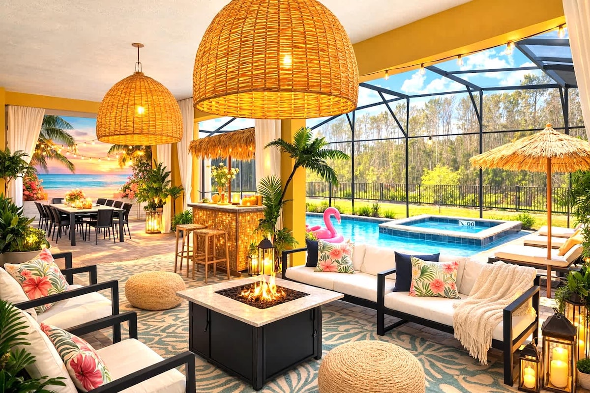Disney-Unterkunft, kostenloser beheizter Pool, Feuerstelle und Spiele