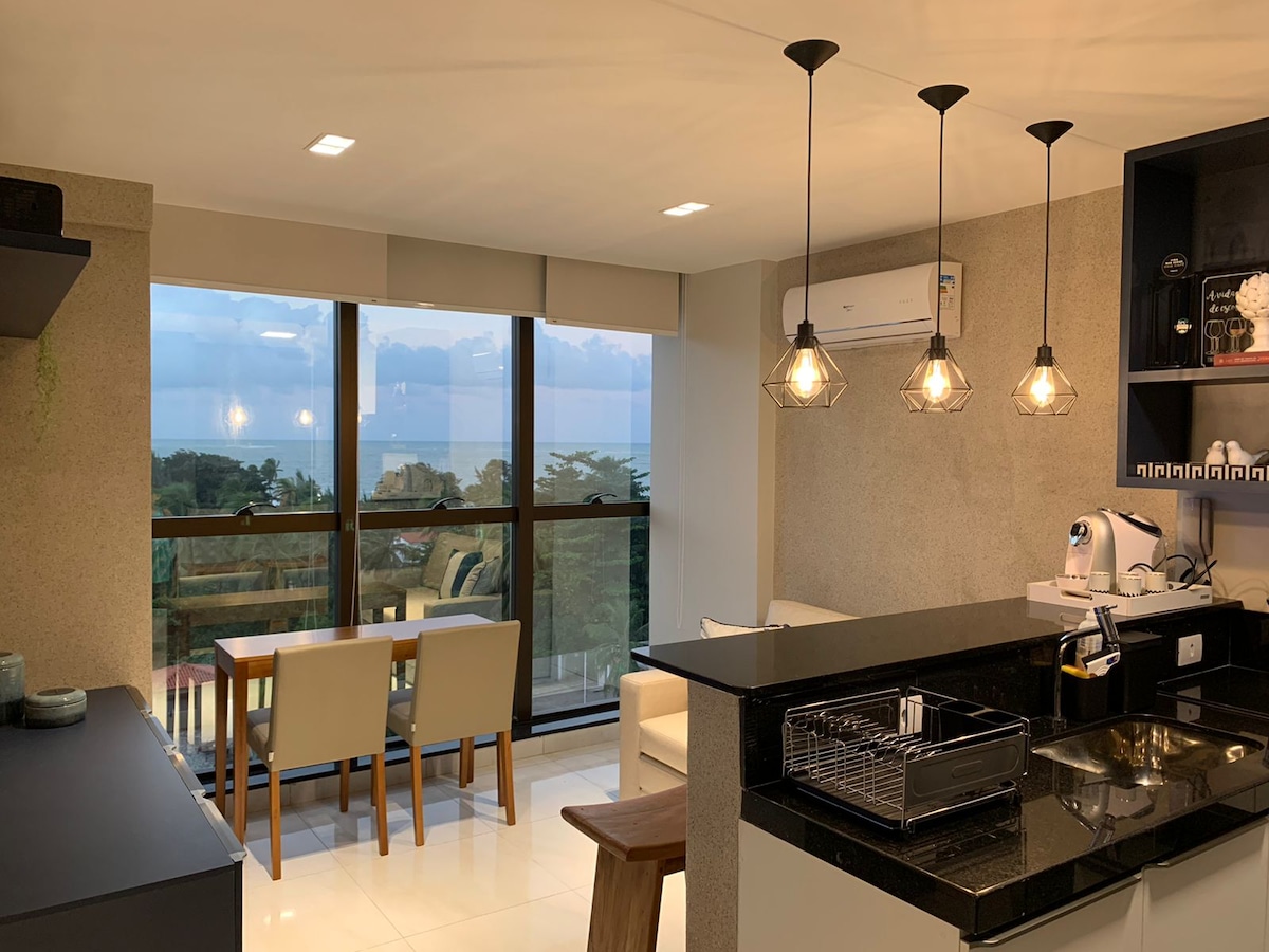 Wohnung im Condominium Resort direkt am Strand Paraíso do Atlântico, mit Pools für die Familie, Sauna, Whirlpool, Fitnessraum usw. im paradiesischen Ponta de Campina, João Pessoa. Der Strand ist ruhig und hat sauberes, blau-grünes Meer, perfekt, um den Tag zu verbringen, und nur wenige Autominuten von unzähligen Sehenswürdigkeiten und Annehmlichkeiten der Hauptstadt entfernt. Die Wohnung verfügt über 2 klimatisierte Schlafzimmer, davon 1 Queen-Suite, geräumig und luftig, mit aufgehendem Balkon mit Meerblick, kompletter amerikanischer Küche und wurde liebevoll eingerichtet ❤