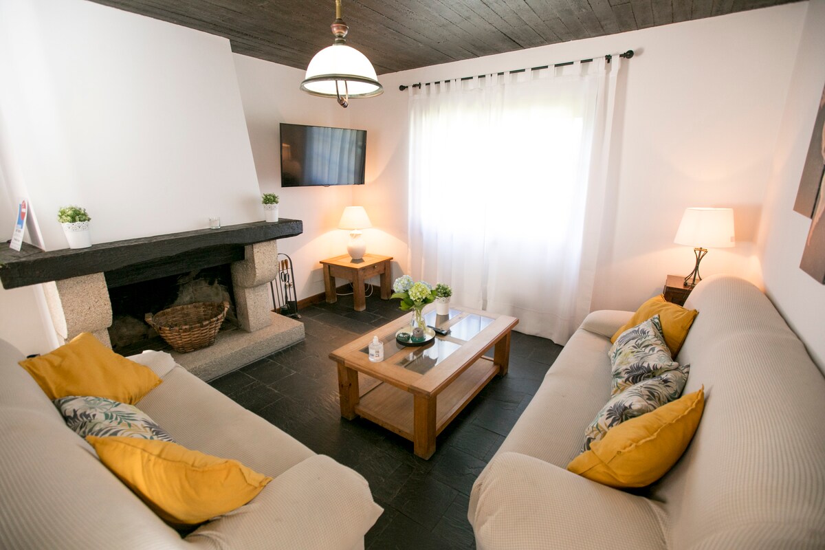 Stone house with 5 bedrooms (sleeps up to 12) and a private pool available all year round, set in a privileged location with sea views — perfect for those seeking a relaxing getaway on the Galician coast. Elegant and cozy décor creates a luxurious atmosphere for your holiday. Fully equipped kitchen, indoor and outdoor dining areas, and a stone barbecue. Living room with fireplace, Netflix-equipped TV, board games… We look forward to welcoming you! VUT-PO-007773