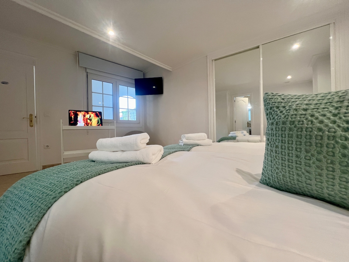 Die Wohnung befindet sich im ersten Stock und ist neu renoviert. Die Zimmer sind mit einem 135 cm breiten Bett, zwei 105 cm breiten Einzelbetten und einem 90 cm breiten Einzelbett ausgestattet. Komplettes Badezimmer Voll ausgestattete Küche Geräumiges Wohn-Esszimmer Waschküche Der sonnige und ruhige Garten ist mit einem Holzgrill (Holz und Kohle inklusive), einem Tisch mit Sonnenschirm und Liegestühlen ausgestattet Die Wohnung liegt nur wenige Schritte vom Zentrum von O Grove in einer sehr ruhigen Gegend, 200 m vom Rathaus entfernt