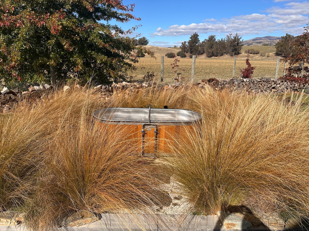 Take it easy at this unique country cabin. Breathtaking views of the surrounding mountains and farmland. Soak in the outside bath. Close to Lake Hāwea hiking and biking trails. Boating and Cardrona and treble cone ski fields. The township of Wanaka with its many award winning restaurants and cafes is only 20km away. The cabin is warm and cozy, sunny, wood burner & heat pump. location is nestled between Grandview and Lake Hāwea station. We have no light pollution making for incredible stargazing.