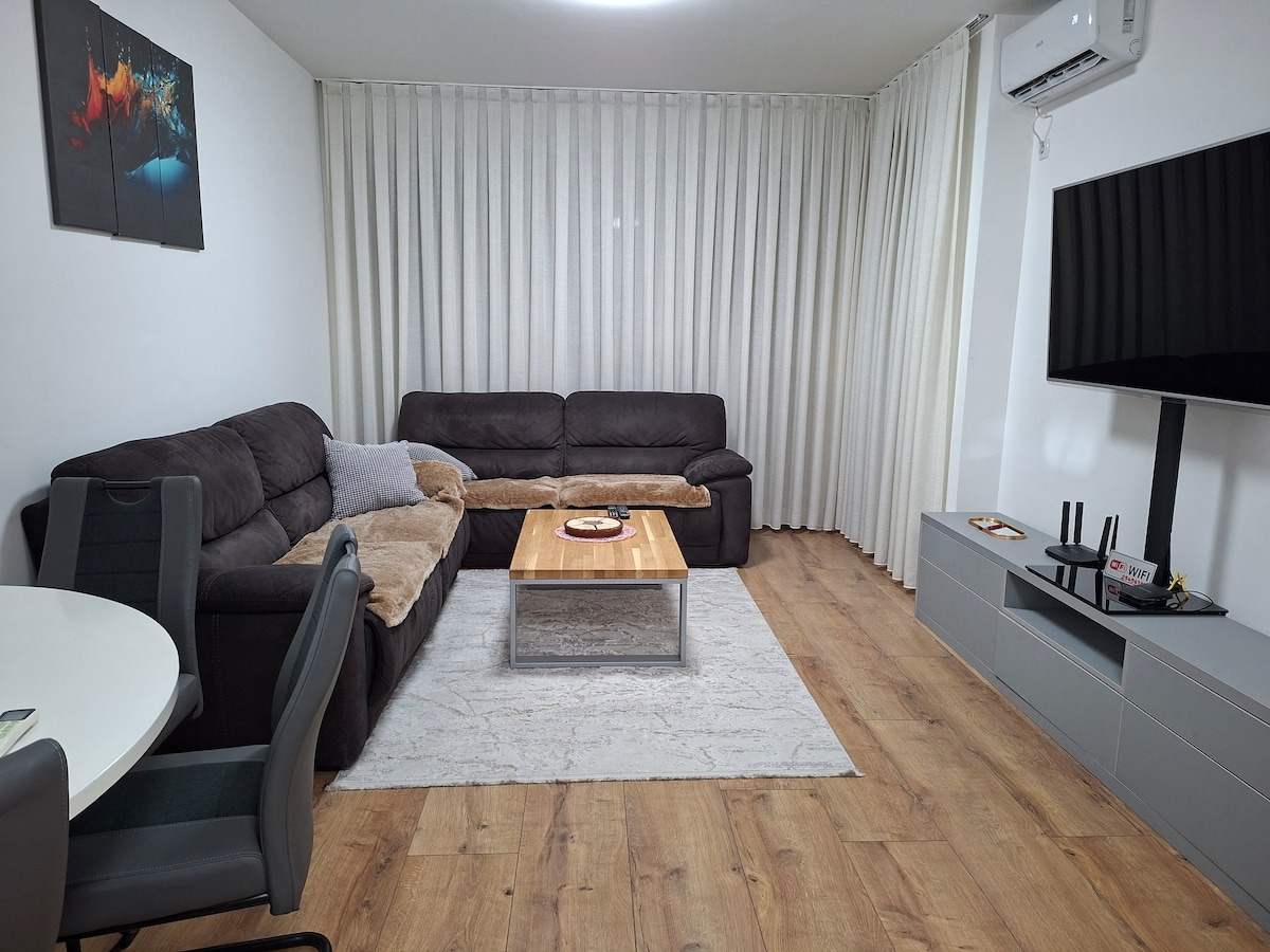 Merkeze yürüme mesafesinde aynı zamanda çok sakin - .Prizren’in eşsiz dağ manzarasına karşı huzurlu bir konaklama deneyimine hazır olun! Prizren’de dağ manzaralı 77 m² modern 1+1 daire! Tarihi şehire ve alışveriş merkezlerine yakın aynı zamanda sessiz. 1 çift kişilik yatak + 2 açılır koltuk ile 4 kişilik konfor. Geniş ve donanımlı mutfak, ücretsiz Wi-Fi, ferah salon. Merkeze yakın, hem aileler hem arkadaş grupları için ideal.