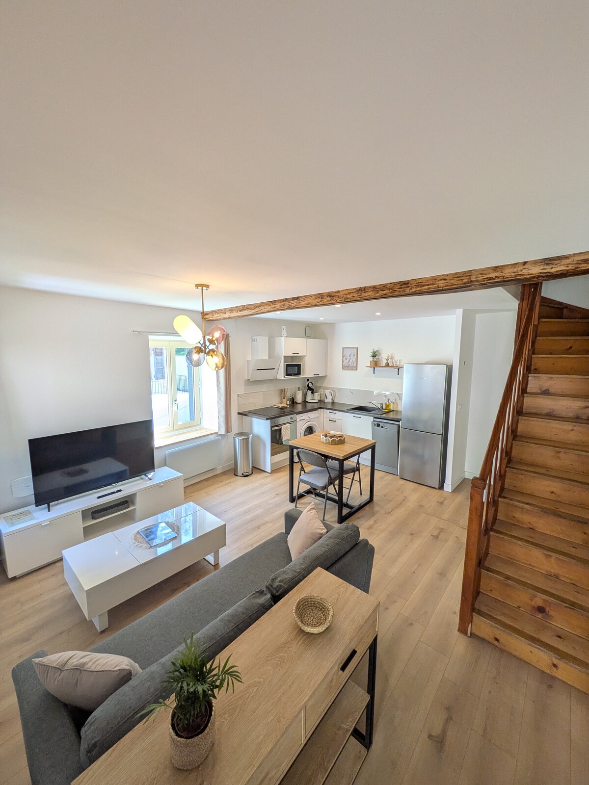 Découvrez un duplex idéalement placé sur les bords du Rhône, au coeur d'un moulin du XV° siècle. Vous y trouverez un gïte récent, propre, confortable, bien équipé et pourvu d'espaces lumineux Entre Lyon, Bourg-en-Bresse, Geneve et Annecy; proche de la PIPA, de la CNPE, de la Via Rhôna; ce duplex s'adresse aux couples, familles ou aux professionnels qui apprécient la proximité et le calme. Le plus ? Un balcon logia équipé d'un bain nordique privé offrant une vue sur les montagnes du Bugey
