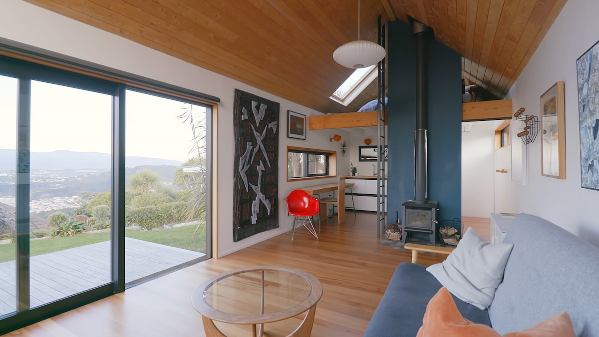 Gewinner der Best Designed Stay New Zealand Airbnb Host Awards 2021. Privates Künstleratelier auf einem Grat mit Blick auf Wellington mit 360-Grad-Blick von der Stadt bis zur Südküste. Die Architekten- und Künstlerbesitzer haben jedes Detail aus Holz entworfen und gefertigt, das vom Familienbauernhof gefräst und stammt. Wir wurden kürzlich von „Never too Small“ interviewt. Sieh es dir an: „ Never too Small episode 41 Flexible Micro Loft - Studio 74“. Bitte lies vor der Buchung „Weitere Details, die du beachten solltest“.