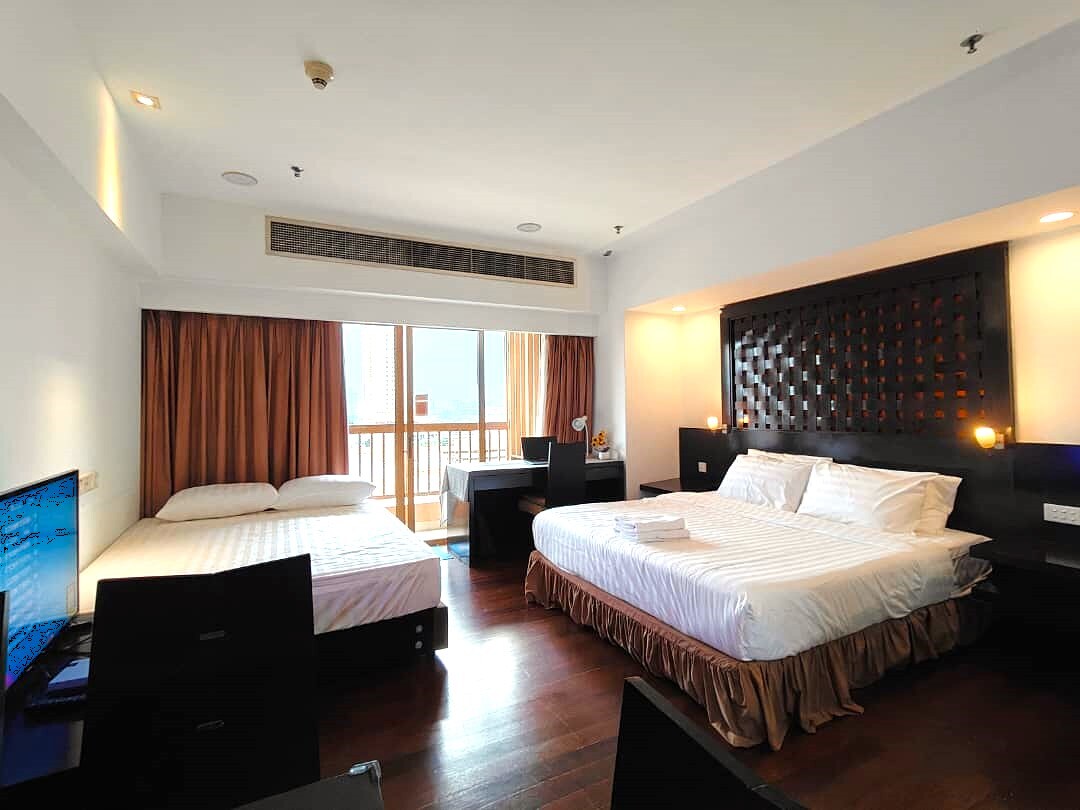 Eine moderne 2-Zimmer-Wohnung mit 2 Bädern und einem Balkon, ausgestattet mit zwei Doppelbetten. Geeignet für 2 bis 4 Gäste. Jedes Badezimmer bietet warmes und kaltes Wasser für ein entspannendes Duscherlebnis. Ausstattung: Duschgel, Shampoo, Handseife. Kühlschrank, Wasserkocher, Reiskocher LED-TV, TV-Box, Haartrockner, Bügeleisen und Bügelbrett Kostenloses Highspeed-WLAN (100 Mbit/s) 1 Stellplätze