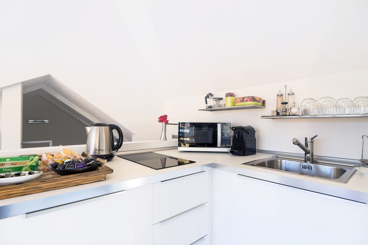 Attico immerso nel verde con vista su Milano. L'appartamento è situato all’ottavo e ultimo piano e si compone di un open space con cucina e divano letto matrimoniale (con due topper per garantire il miglior riposo possibile), camera da letto con letto matrimoniale e poltrona letto e un bagno. L'appartamento gode di una spettacolare vista panoramica sul Duomo e il centro città, che può essere apprezzato dalla bow window calpestabile sorseggiando un bicchiere di vino.