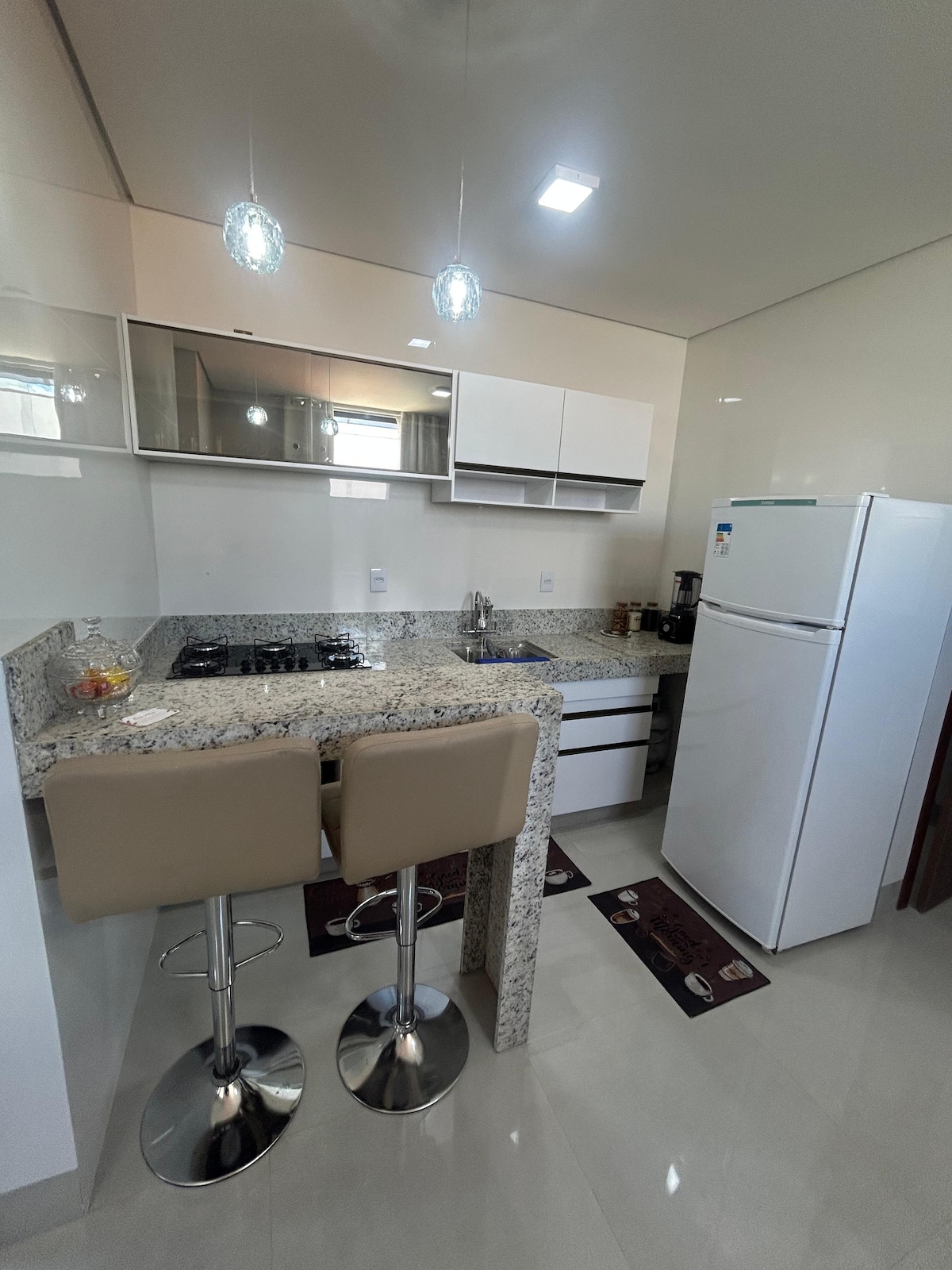 Seja muito bem-vindo! Apartamento tipo flat acolhedor e prático localizado no coração da cidade. Próximo ao parque de exposições, bancos, farmácias, supermercados, postos de combustível, lanchonetes, lavanderia, rodoviária, padaria num raio de aproximadamente 500 metros. Aqui, você terá tudo que precisa para uma estadia confortável, funcional e com uma localização estratégica.