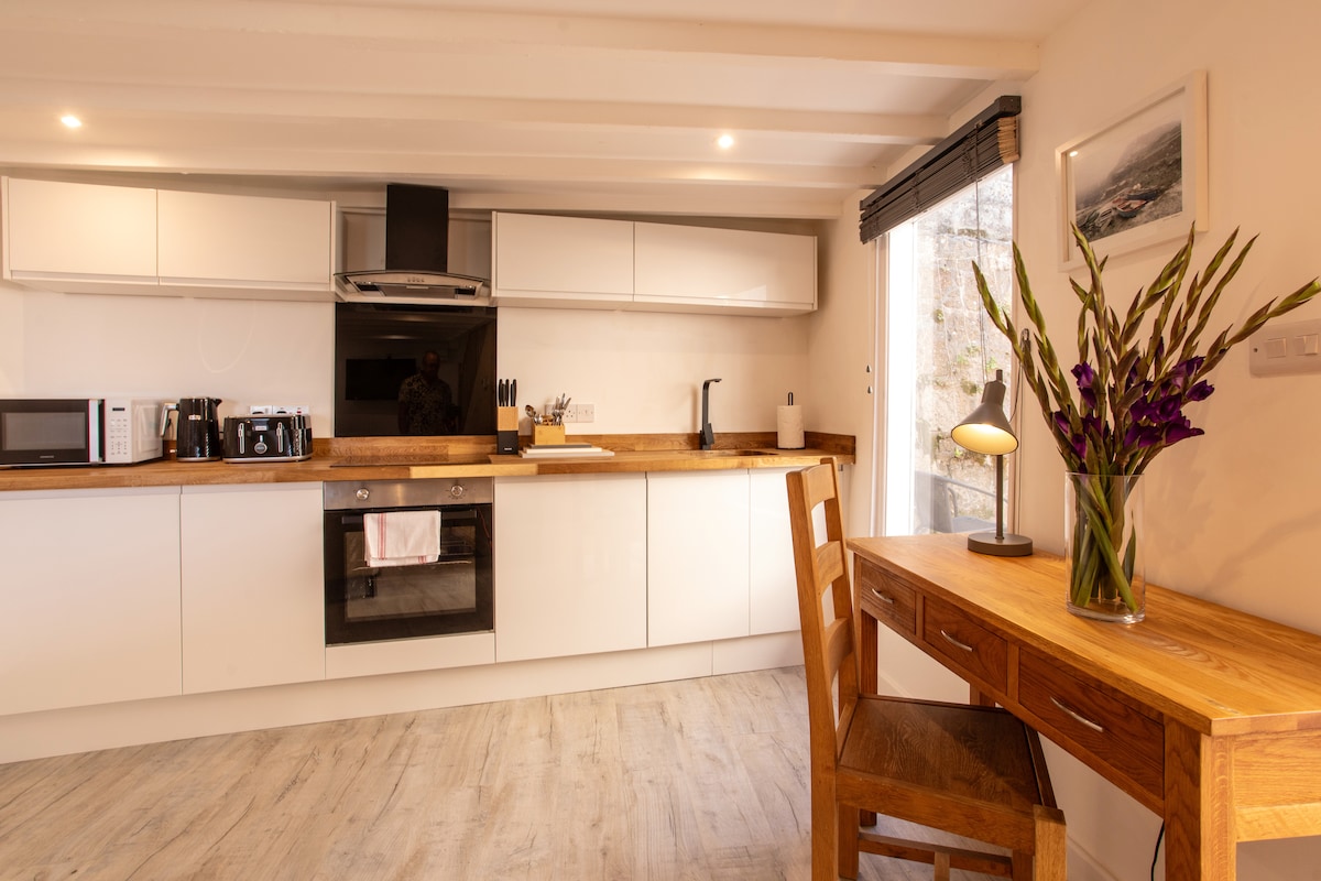Romantischer Ausflug ans Meer: Gönn dir einen magischen Kurzurlaub. Eingebettet in einen sicheren, geschlossenen, privaten Innenhof am Wasser im schönen Hafendorf Mousehole verspricht dieses familiengeführte, neu renovierte Bijou Bolthole eines umgebauten Netzlofts ein unvergessliches Erlebnis. Parkplätze stehen in unmittelbarer Nähe im South Quay Carpark für 10 £ pro Tag zur Verfügung, Stellplätze sind nicht garantiert. Meerblick vom Schlafzimmer und Wohnzimmer aus. Fantastisches WLAN. Hervorragende Lage. Rieche die Meeresluft aus den offenen Fenstern
