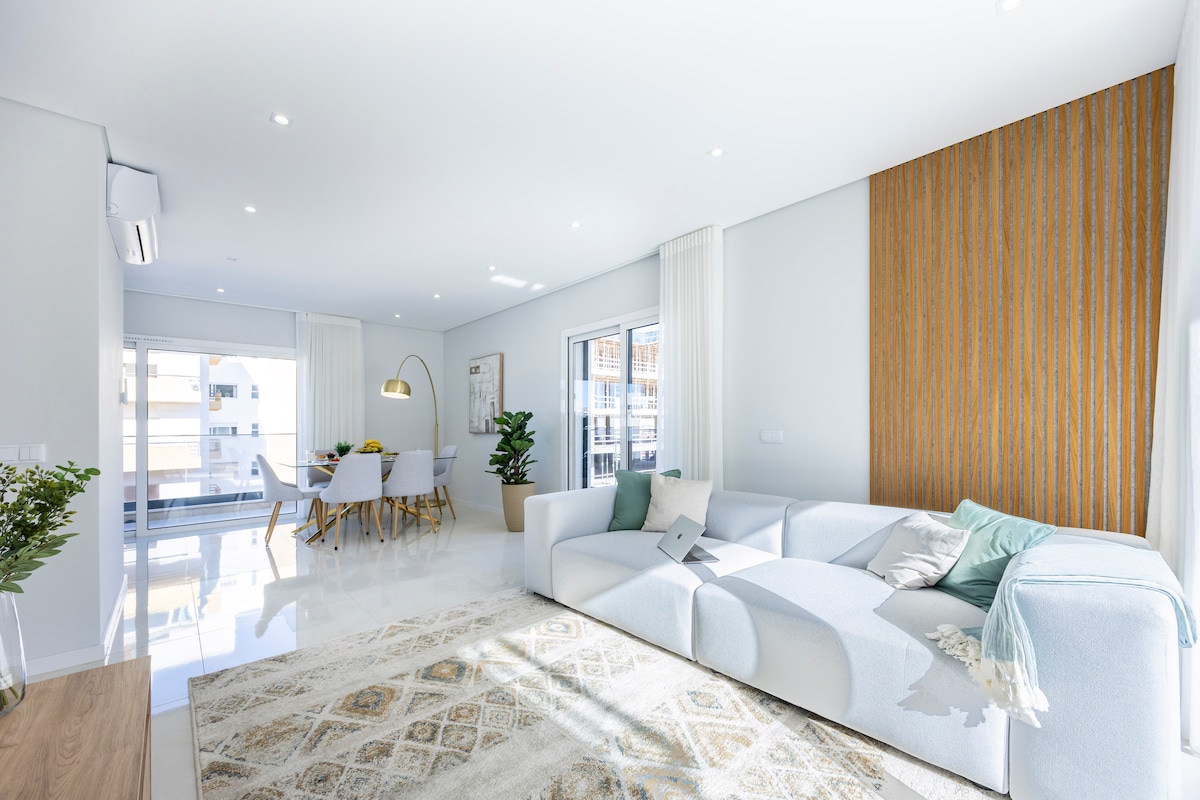 Raffiniertes Apartment von 110 m² im Herzen von Portimao, entworfen für eine anspruchsvolle Lebensart: eine Suite in King-Size, ein zweites Schlafzimmer in King-Size, zusätzliches Badezimmer, großes, helles Wohnzimmer, Esszimmer, Einbauküche. Ideal für Familien. Außergewöhnlicher Vorteil der Wohnung, ihre 25 m² große Terrasse: Lounge, Hängematte, Essbereich im Freien und Beamer für Filmabende im Freien. Etwa 5 Autominuten von Praia da Rocha (3,2 km) entfernt. Restaurants, Geschäfte zu Fuß erreichbar