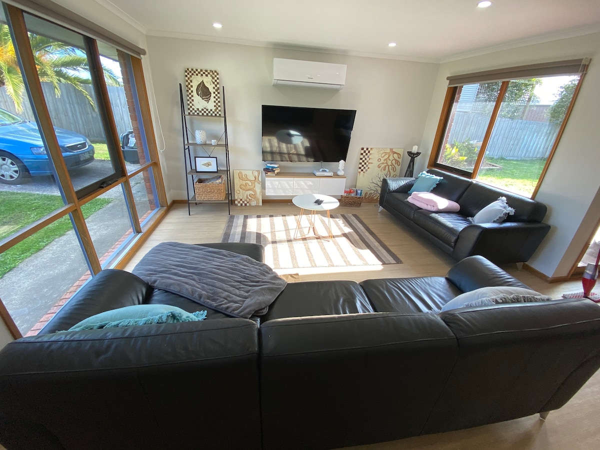 Located a street away from the Hopkins River & Proudfoot’s Café & Restaurant. 🐋 Couple of minutes drive to Logan’s Beach Whale Platform. 🌊 Moyjil-Point Ritchie & Granny’s Grave Beach are a short walk - Swimming beach - 5 min drive 👟 🚲 Walking & bike paths run alongside the river & coastline. 3 bedrooms - 2 Queen, 2 singles & 1 single foldaway. Updated kitchen & bathroom. Split system for heating/cooling. DVD's, table tennis, board games, bikes & more. 🚙 approx 5 min to city centre