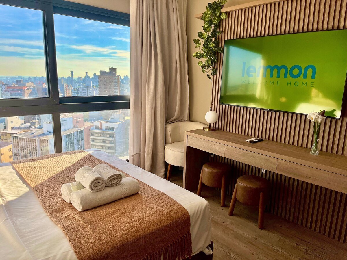 Modernes Studio im 6. Stock des GO24-Gebäudes, mit eleganter Einrichtung in Schwarz und Holz. Ideal für praktische und komfortable Aufenthalte, mit Queensize-Bett, voll ausgestatteter Küche, schnellem WLAN und Klimaanlage. Das Gebäude bietet eine Dachterrasse mit Swimmingpool, ein 24-Stunden-Fitnesscenter, eine Wäscherei und Coworking. Das Hotel liegt in der Rua 24 de Outubro, im Viertel Auxiliadora, in der Nähe von großartigen Restaurants, Einkaufsmöglichkeiten und Freizeitangeboten. Lang lebe diese Erfahrung!