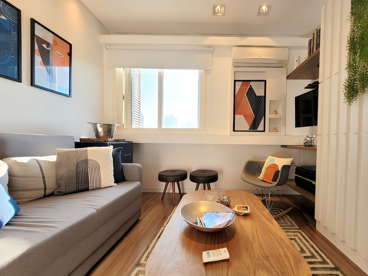 Studio contemporâneo e aconchegante na rua mais tranquila da Cidade Baixa. Espaço funcional, bem equipado e pensado para uma estadia confortável. A poucos passos da região boêmia do bairro, com bares, restaurantes, cafeterias, mercados, farmácias e fácil acesso ao transporte público. Inclui vaga de garagem. Edifício com portaria remota 24h e acesso por reconhecimento facial mediante cadastro prévio.