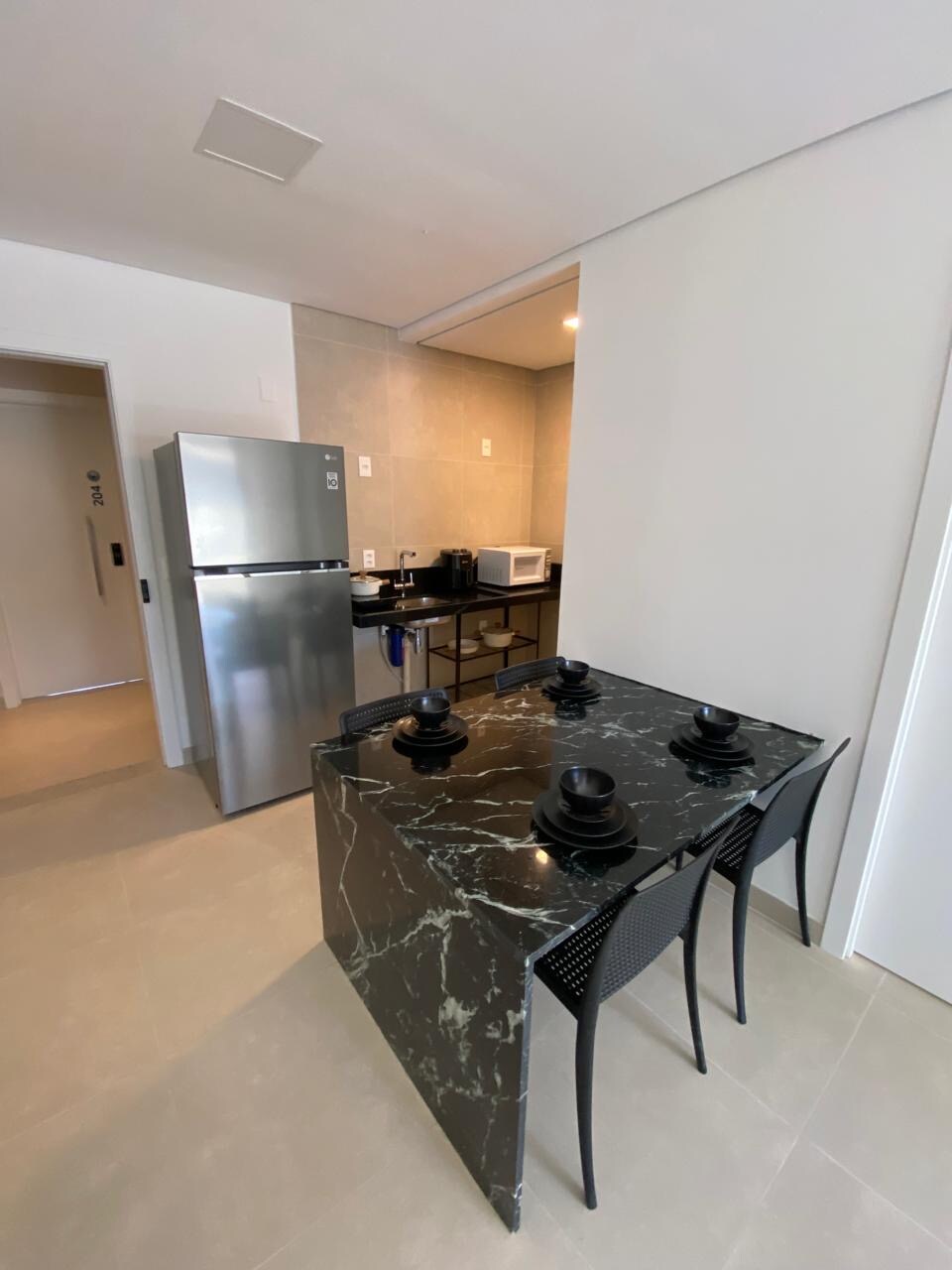 Apartamento completo, 1 quarto, 2 banheiros.