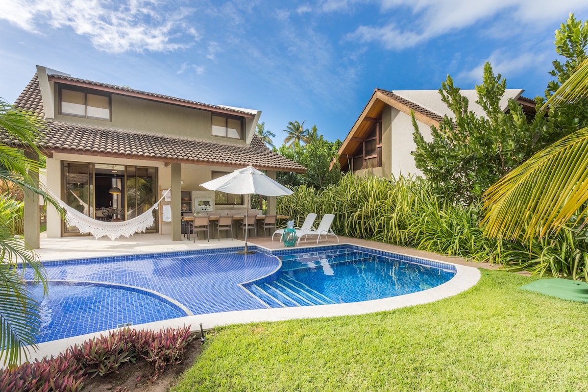 Bangalô novo de frente para o mar com 7 quartos mais um quarto de serviço, piscina privativa, varanda gourmet, churrasqueira. Excelente lugar para férias em família inesquecíveis. Lugar ideal para quem procura conforto, paz e tranquilidade com segurança e estrutura completa de condomínio (pista de corrida, bicicleta, academia, quadra poliesportiva, de tênis saibro, beach tennis, cinema, brinquedoteca, sala de cinema, sala de jogos, restaurante, conveniência, recepção 24h, equipe de manutenção).
