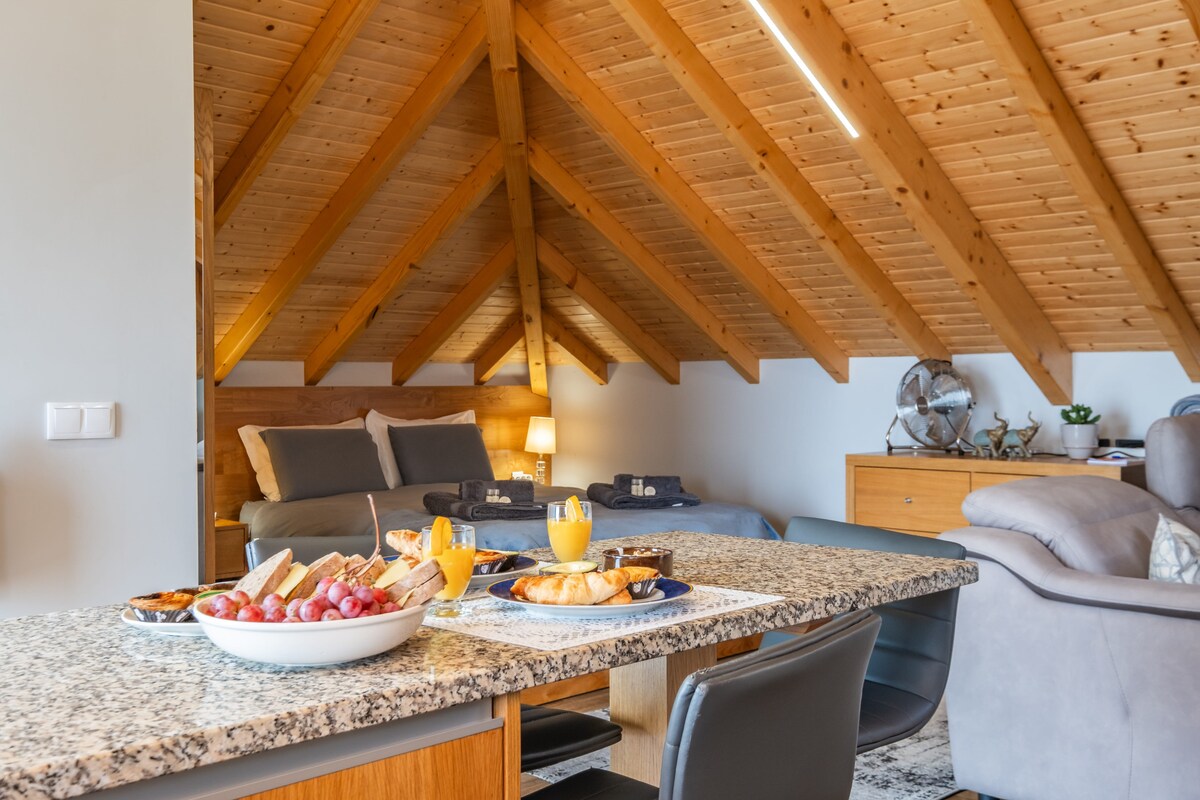 Casa do Bisa is a unique, restored family home from 1891, blending tradition with comfort. Located in peaceful Ribeira da Janela which is in the middle of 4 of the most famous tourist points on the island, it offers 2 bedrooms, a full kitchen, living room with sofa bed, and a private office with Madeira’s fastest internet. Perfect for remote work. For 6+ guests, an attached studio with sofa bed and bathroom is included. With a full mountain and sea-view terrace, and a rare 2 cars private parking