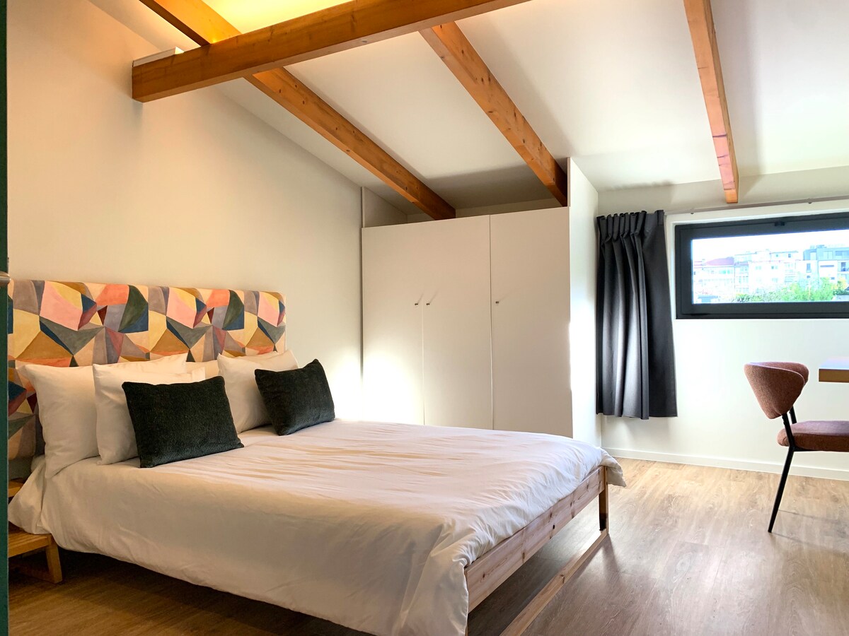 Ruhiges und modernes Zimmer mit eigenem Bad und kürzlich renoviertem Anwesen aus dem 19. Jahrhundert. Im historischen Viertel Cedofeita, in der Innenstadt von Porto. Genieße den Sonnenschein im Gemeinschaftsgarten oder auf deinem privaten Balkon sowie die Nähe zum Herzen der Stadt. Zu den Annehmlichkeiten gehören ein gemeinsam genutzter Co-Working-Bereich und eine voll ausgestattete Küche, ein kostenloser und zuverlässiger WLAN-Zugang sowie eine münzbetriebene Wäscherei. Verfügt über eine Klimaanlage und Zentralheizung.