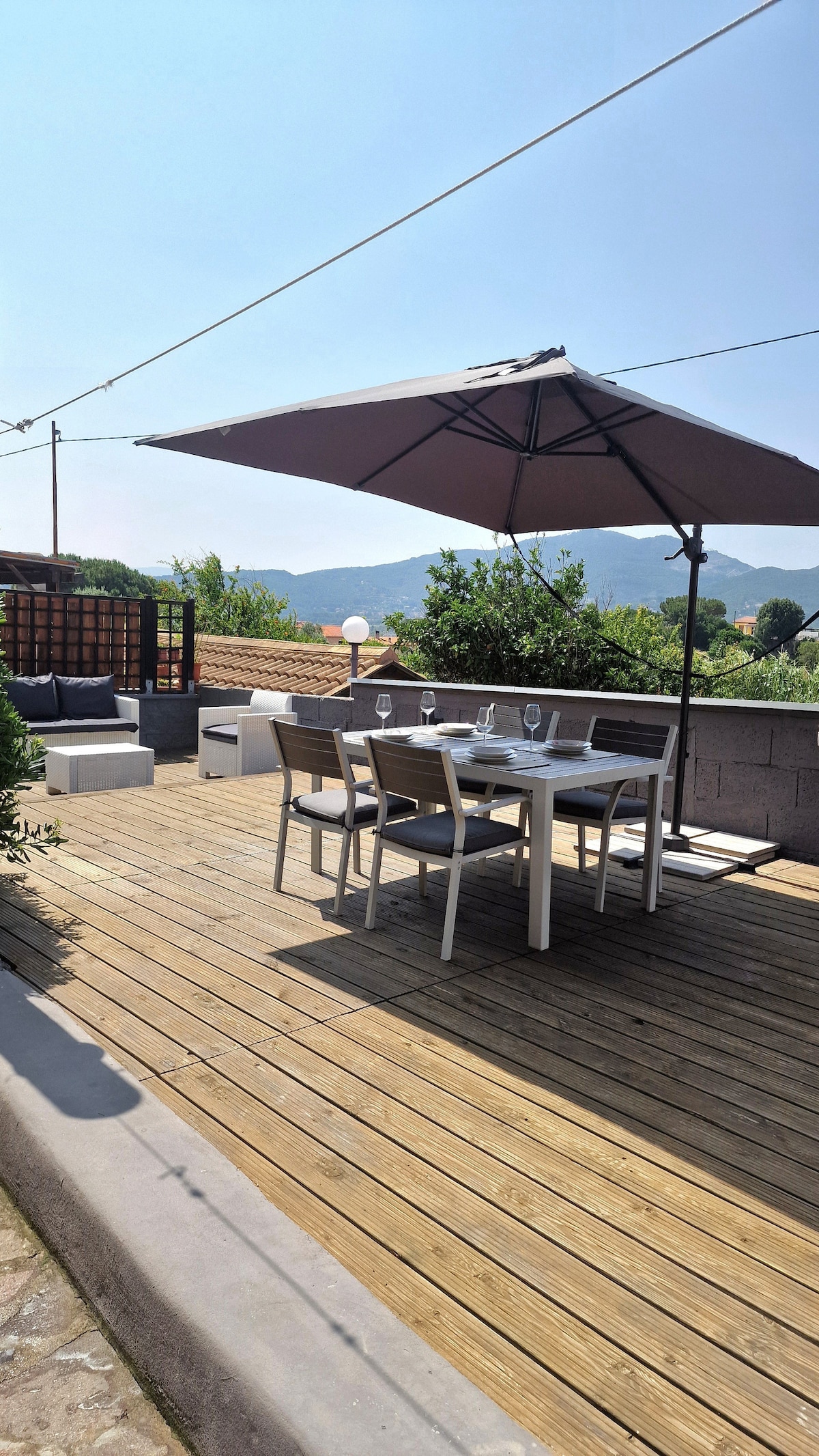 an der Promenade von Cavo, in einer einzigartigen Lage, neu gebaute Mansarde mit sichtbaren Balken, extrem hell, mit großer schattiger Terrasse mit Blick auf das Meer; große Außenbereiche, nur wenige Gehminuten vom Dorf und dem schönen Yachthafen entfernt. Der Strand davor ist frei, während etwas weiter ein kleines Bad mit Sonnenliegen und Sonnenschirmen vorhanden ist und in der Nähe können Sie Fahrräder, Roller, Autos und Schlauchboote mieten.