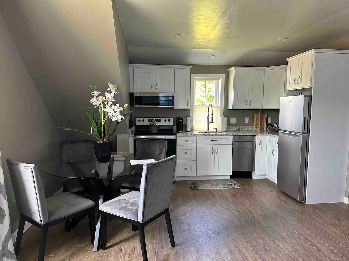Willkommen in deinem geräumigen Studio direkt am Piscataqua River in der Innenstadt von Portsmouth. Diese schöne Unterkunft ist nur einen kurzen Spaziergang von allen Geschäften und Restaurants von Portsmouth und nur einen Steinwurf vom besten Dachrestaurant und der besten Taco-Bar der Stadt entfernt. Diese entspannende Eigentumswohnung bietet ein Queensize-Bett mit Bettwäsche mit 600er Fadenzahl, ein komplettes Badezimmer, einen lebendigen Essbereich, einen großen Fernseher mit WLAN und ROKU-Zugang sowie ein lässiges, modernes Ambiente, damit du dich wie zu Hause fühlst.