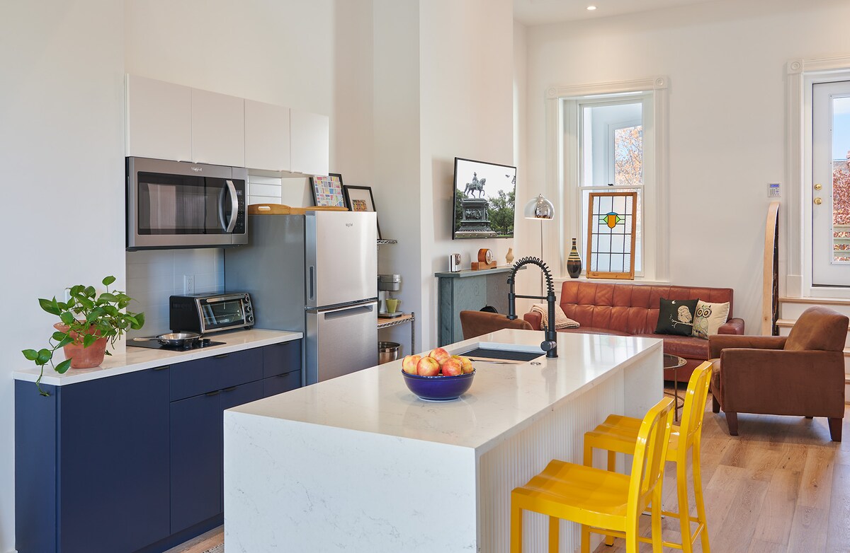 Guests describe our Airbnb as an ideal balance of modern living and historic charm. This extraordinary, light-filled, airy loft apartment is the top 2 floors of our private home, an iconic Logan Circle Victorian. It peers out onto the treetops of Logan Circle Park and neighboring historic homes. Totally private with its own entrance, the apartment is accessed by elevator. We are in the heart of the Nation's Capital, within easy walking, cycling, or transit distance to all the city has to offer.