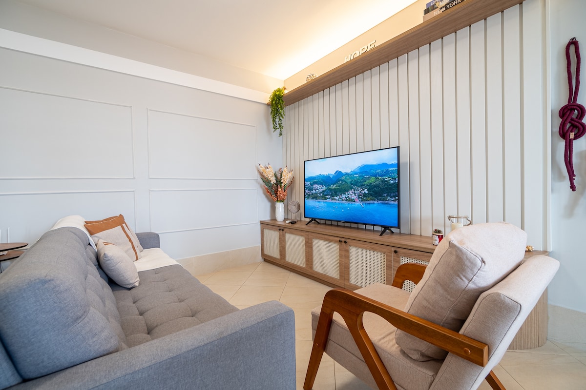 Genieße das Beste von Ubatuba in dieser neuen Wohnung in der besten Nachbarschaft. Die Wohnung ist nagelneu und renoviert, sie ist super stilvoll und gemütlich, entworfen und durchdacht, damit du dich während deines Aufenthalts sehr wohl fühlst. Die Lage ist der Schlüssel zu diesem Airbnb, da es sich in einer super ruhigen und sicheren Gegend befindet, 5 Autominuten vom touristischen Ort entfernt, wo sich die Bars, Restaurants, Itaguá-Uferpromenade usw. befinden. Gleichzeitig ermöglicht diese Lage eine gute Anbindung an die Strände und Supermärkte.