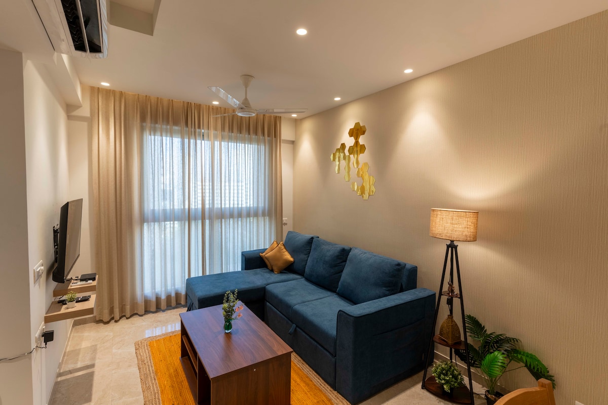 Welcome to your Van Gogh-inspired retreat! Centrally located near the airport and Powai Lake, this stylish 1 BHK flat offers comfort and convenience. Enjoy two TVs, two bathrooms, a dining area, IKEA furniture, spectacular lighting, free WiFi, Amazon Prime, a Caravaan music system, AC, and ceiling fans. Relax on the sofa cum bed or the plush bed in the cozy bedroom. Wake up to a breathtaking hill view and immerse yourself in a world of art and tranquility. Book now!