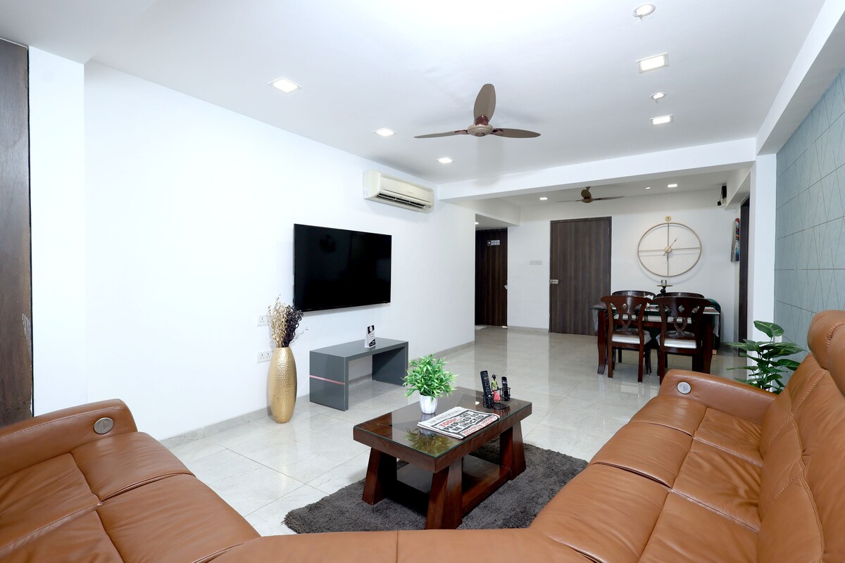 Diese Wohnung ist das perfekte Beispiel für Stil und Einfachheit. Die slawische Innenräume und der Komfort, der die Erwartungen übertrifft. Diese Suite mit einer maximalen Belegung von 9 Personen. Diese Hochhauswohnung hat einen schönen Blick auf die Stadt. Du kannst die Aussicht aus deinem Wohnzimmer genießen, während du an Tee nippst. Eine großartige Option für Familien, die zur Freizeit nach Mumbai reisen. Mit seiner geräumigen Aufteilung, der praktischen Ausstattung und familienfreundlichen Optionen bietet sie einen komfortablen und angenehmen Aufenthalt für alle.