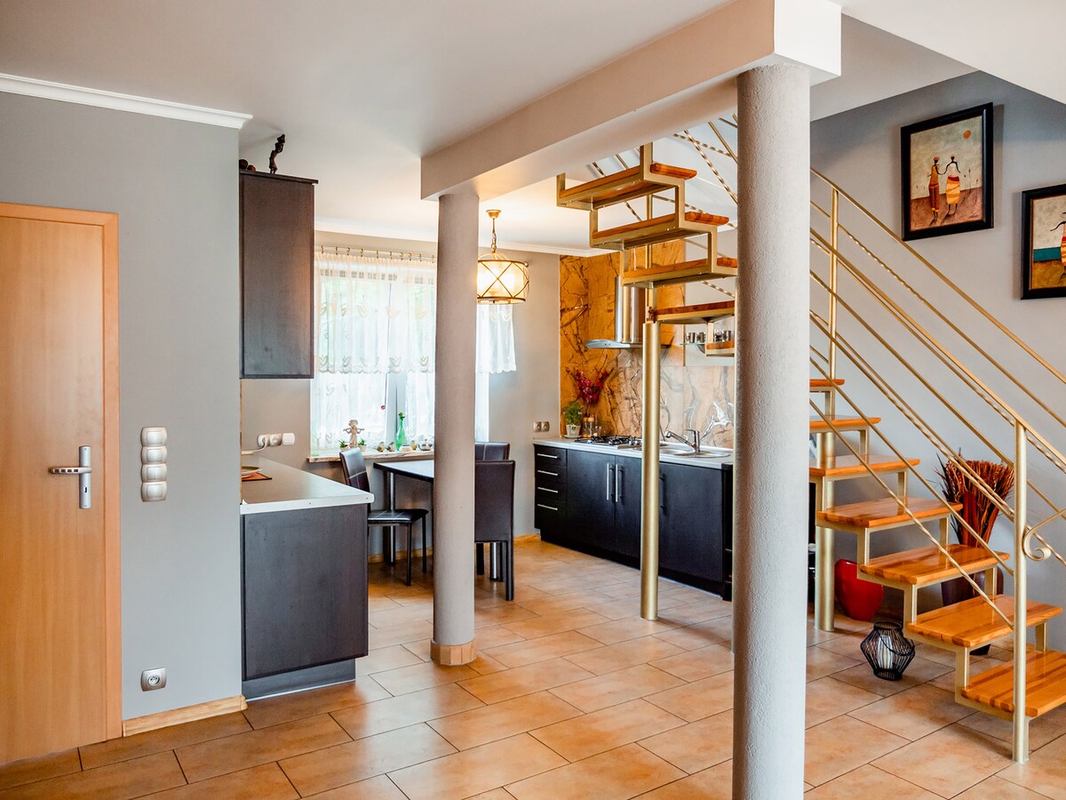 Das finnische Haus in Kliny ist ein einzigartiger Ort in Großpolen am Rande des Zielonka-Waldes und gleichzeitig in der Nähe von Posen (2,5 km zum Turm Dziewicza Góra, 14 km zum Zentrum von Posen). Das Hauptgebäude, die Sauna und das Grillhaus sind aus Holz und wurden von der bekannten und renommierten finnischen Firma Kontio entworfen. Der gesamte Gebäudekomplex stammt aus Finnland, ebenso wie die speziell ausgewählte Innenausstattung. Bei uns fühlen Sie sich wie im finnischen Urlaub!
