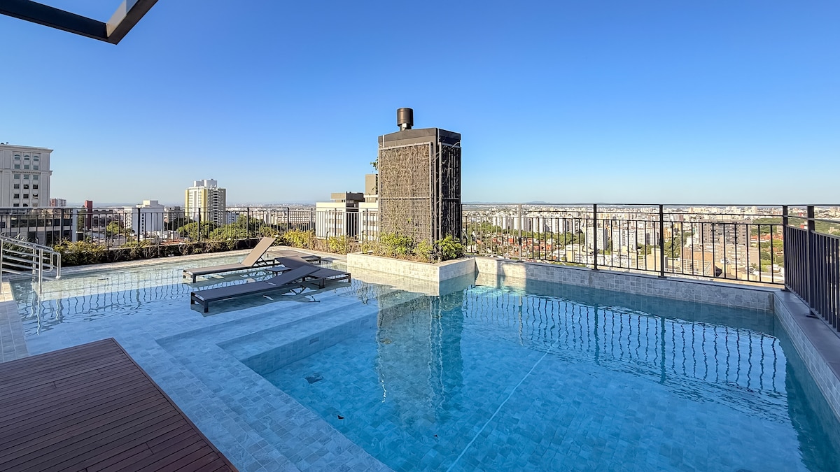 Studio moderno, c/piscina, academia, churrasqueira