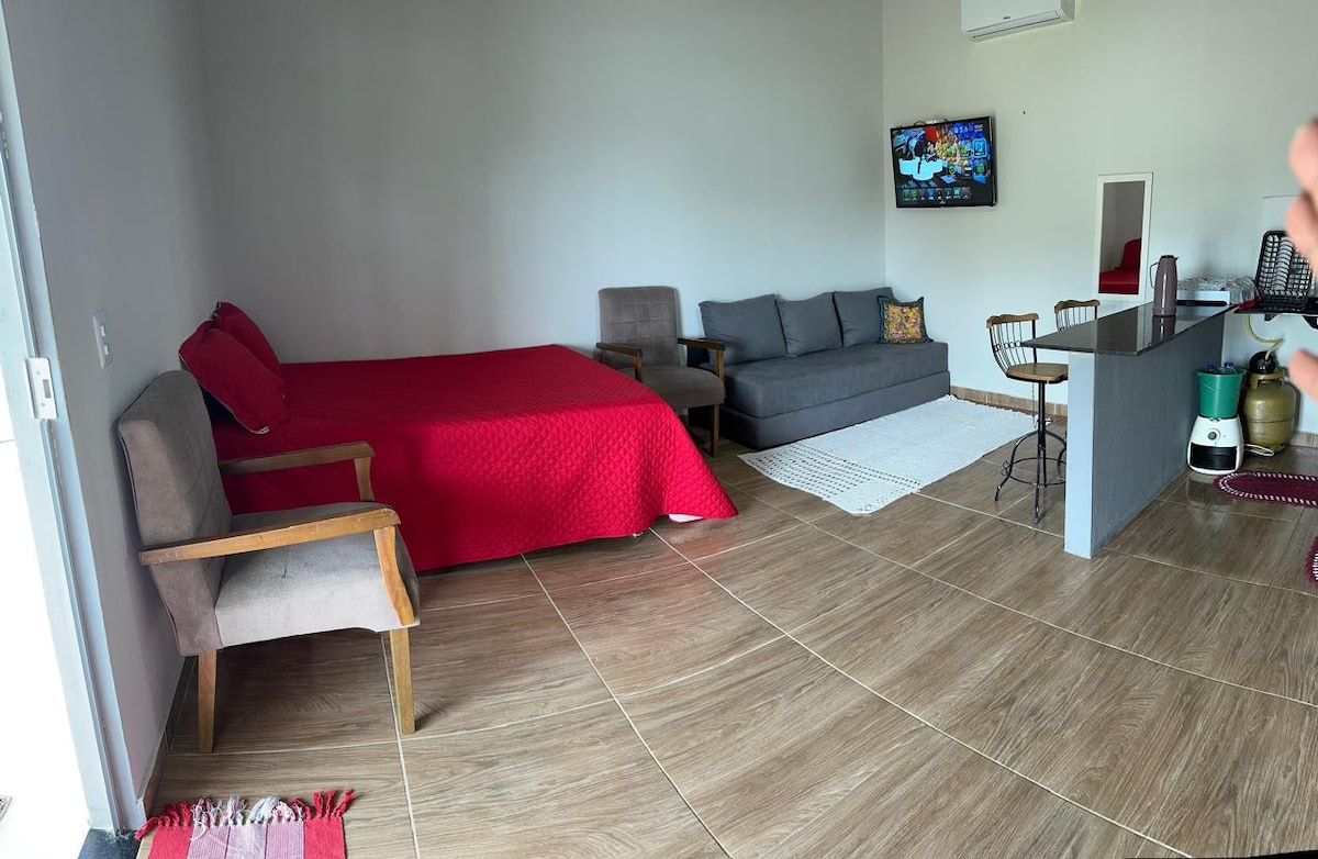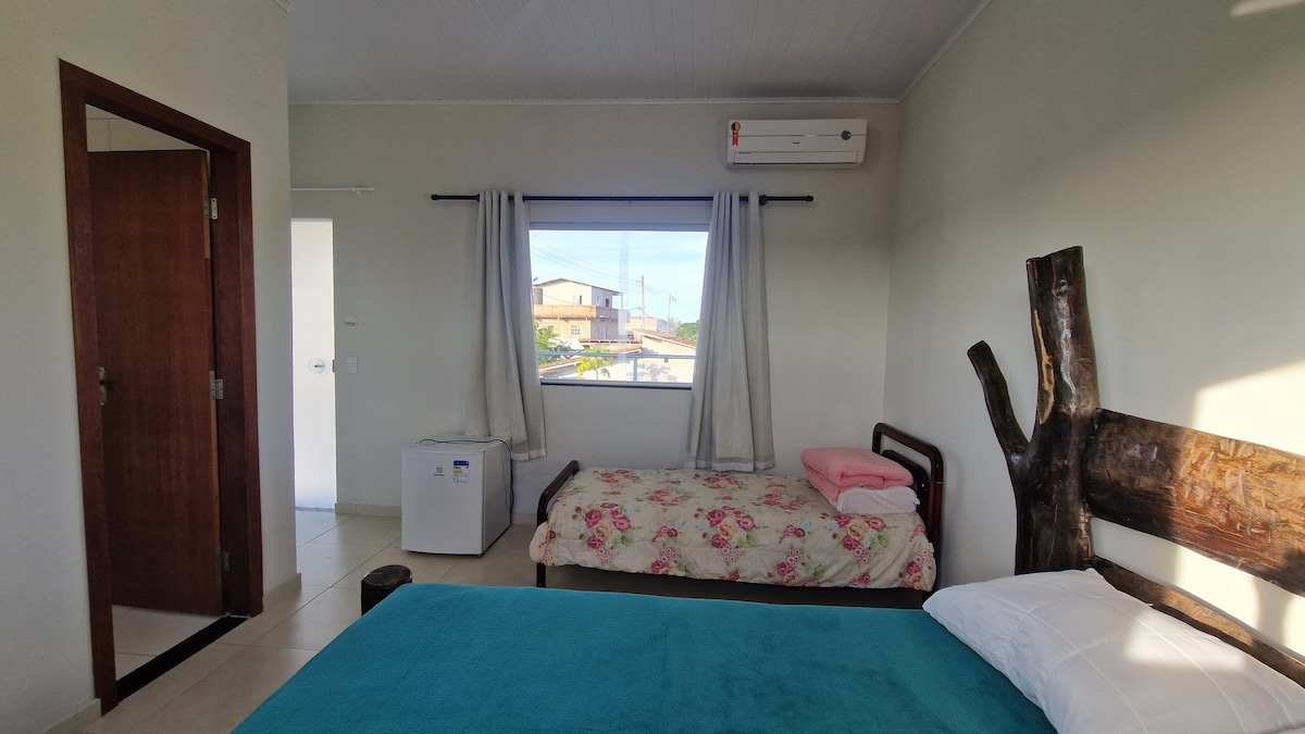 Komfortable und sehr geräumige Suite (1 Doppelbett und 1 Einzelbett). 5 Gehminuten vom Strand und den besten Restaurants in Cumuruxatiba entfernt. Neubau, übersichtliches und luftiges Zimmer. WLAN und Klimaanlage. TV in suite. Minibar in suite. Super saubere Suite. Wir bieten frische, stinkende Bettwäsche und Handtücher an. Ruhige und familiäre Atmosphäre. Geschlossen, mit elektronischem Tor. Gemeinschaftsbereich mit Meerblick und Hängematten auf dem Balkon.