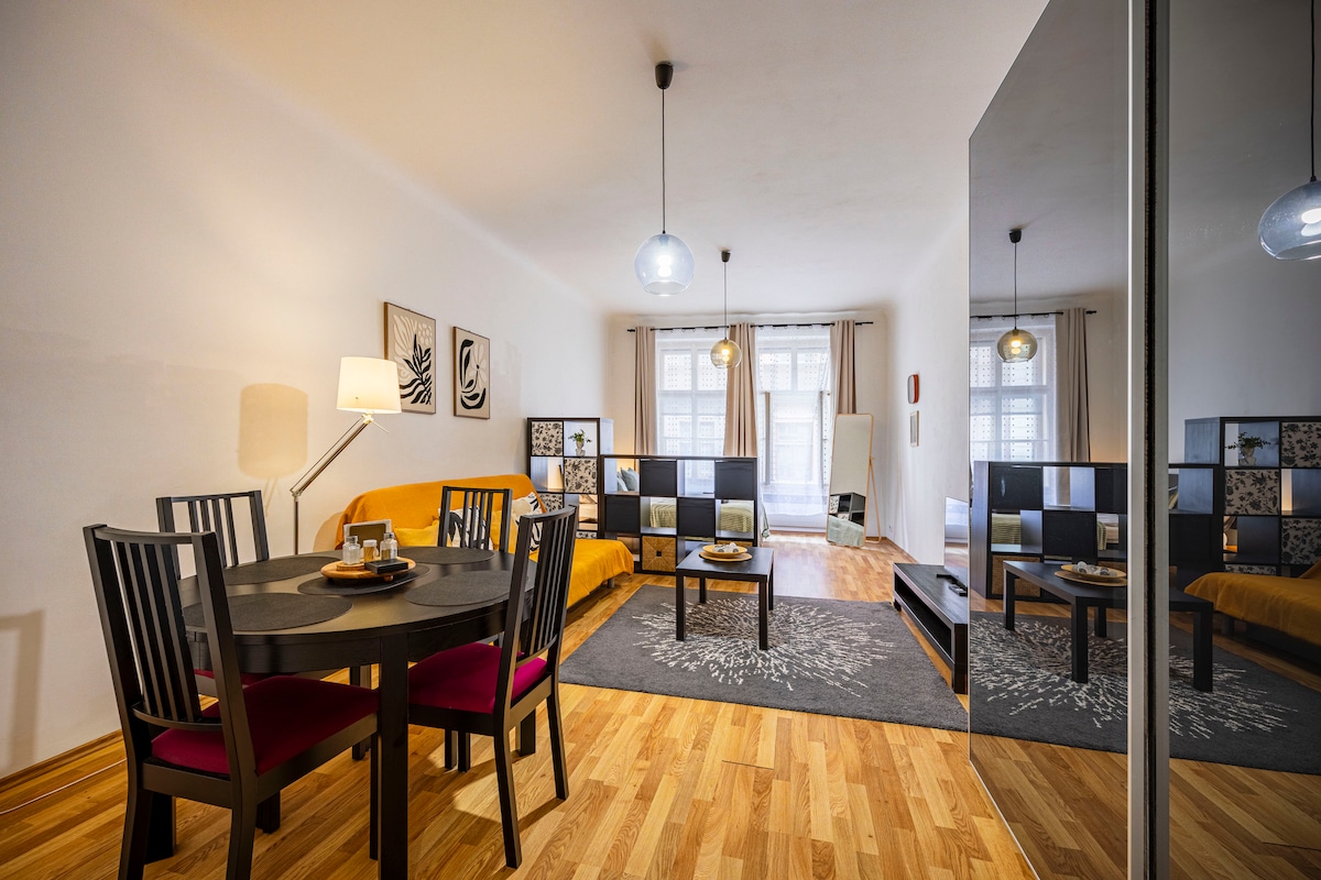 Gemütliche Studiowohnung mitten im Prager Stadtzentrum, nur wenige Schritte vom Wenzelsplatz entfernt, wo der ganze Spaß ist, den die Stadt zu bieten hat. Aber trotzdem ein wenig versteckt, sodass du dich hier entspannen und gut schlafen kannst, wenn du abends müde wirst. Ideal für ein Paar oder eine Einzelperson.