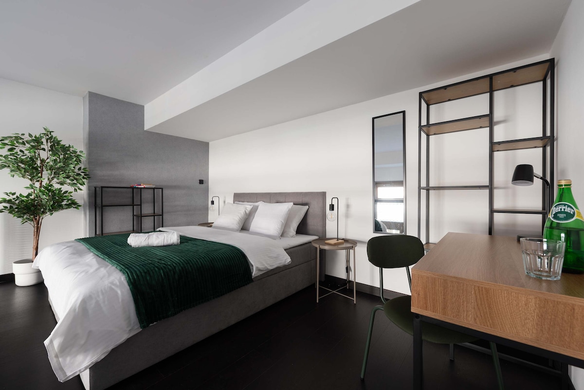 Erlebe die brandneuen, stilvoll eingerichteten Wohnungen des renommierten Architekturbüros Nedvěd Architekti, in denen du alles von bequemen Betten bis hin zu Handtüchern und Kaffeetassen findest. Das sorgfältig renovierte Gebäude hat das Beste der Geschichte bewahrt und alles hinzugefügt, was modernes Wohnen erfordert. Mach es dir bequem! • 5 Minuten zum Herzen von Prag • 80 Meter bis zum nächsten Café • 1 Haltestelle vom Haupthbahnhof entfernt • Nur wenige Schritte von der U-Bahn und der Straßenbahn entfernt