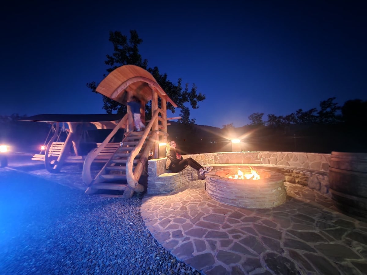 The new cabin at Moon Valley Comanric is ideal for two couples or families with children seeking comfort, privacy, and nature. It features two separate bedrooms, each with a private bathroom and bathtub, offering full privacy for everyone. A practical kitchenette sits between the bedrooms, perfect for snacks, relaxed breakfasts, and shared moments. Modern, warm, and functional, made for memorable stays.