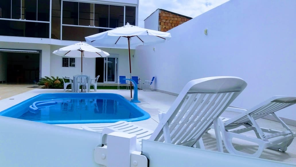 BITTE LESEN SIE DIE ANZEIGE. Haus in Praia Real - Torres. Verfügt über einen Pool mit SOLAR-Heizung! Es verfügt über 5 Schlafzimmer, davon ist eines ein Suite. Das Haus hat zwei Etagen. Das Obergeschoss verfügt über 2 Schlafzimmer und 1 Badezimmer. Der untere Teil verfügt über 3 Schlafzimmer (1 Suite) und 1 Badezimmer. Es gibt eine Waschmaschine und einen schönen Grill. Alle Zimmer sind klimatisiert. Im hinteren Teil des Grundstücks befindet sich ein Kiosk mit Billardtisch, Tischtennisplatte, Kartentisch und Tischfußball. Und im Hinterhof ein Volleyballnetz.