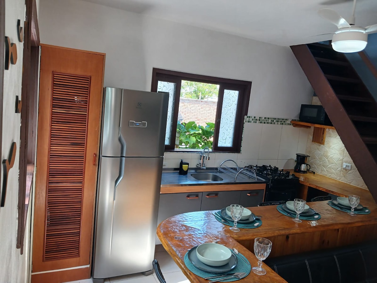 Unser Ort ist neu und darauf ausgelegt, eine entspannende Atmosphäre für die Gäste zu schaffen! Wir haben Liegestühle, Kühlbox, Grillutensilien, voll ausgestattete Küche und Streaming auf TVs, damit Sie Ihre Reise in vollen Zügen genießen können! Wir sind 300 m vom Strand von Perequê Mirim, 750 m vom Strand von Santa Rita (über den Wanderweg) und 900 m von Enseada entfernt. Das Zentrum von Ubatuba ist 15-20 Minuten mit dem Auto entfernt. Die Region hat auch mehrere Restaurants und Annehmlichkeiten in der Nähe, und es ist möglich, alles zu Fuß zu erledigen!