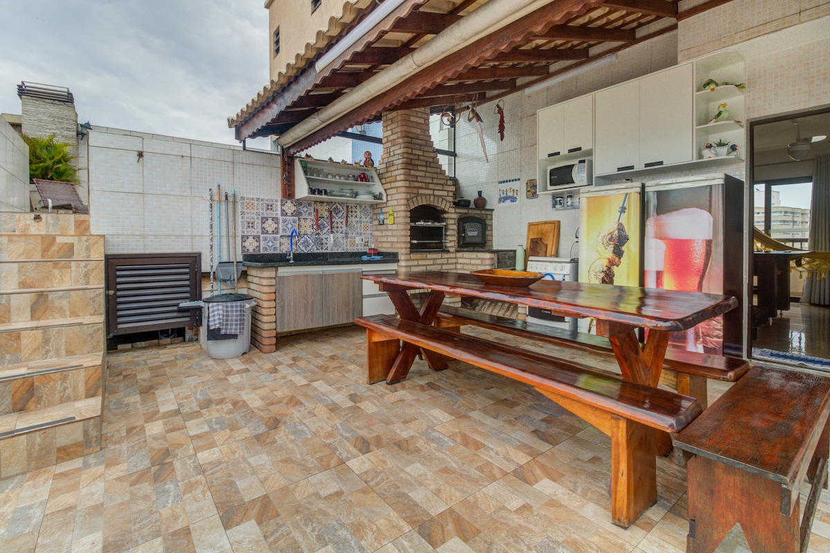 Frente ao Mar Lindo ap com quintal/churrasqueira