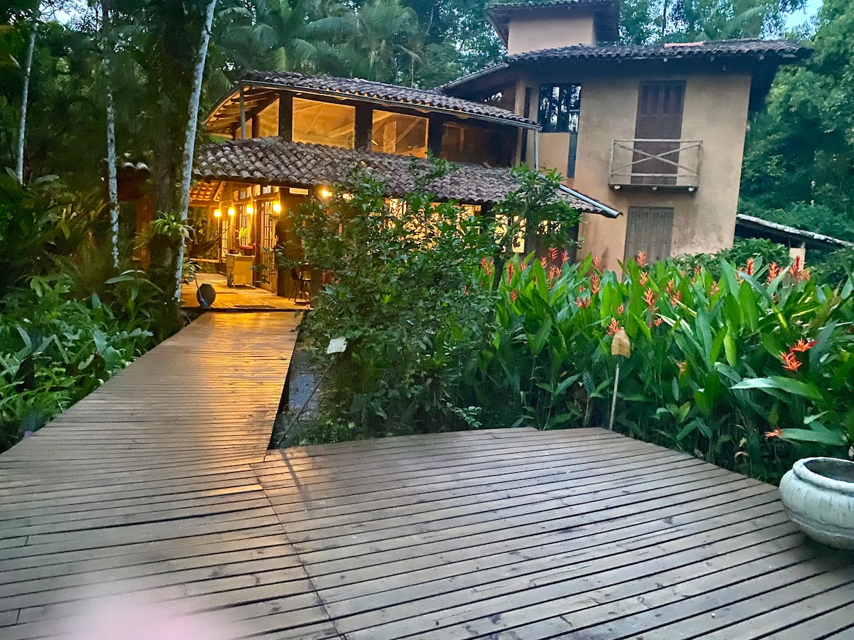 Para quem gosta de aventura e de caminhar este é o passeio ideal, bem pertinho de São Paulo, com acesso por trilha ou mar (não é possível chegar de carro - tem estacionamentos particulares em Bertioga. Suíte confortável, a dois minutos da praia, com um delicioso café da manhã e ambiente familiar para dias de descanso. Por favor observe as regras: não aceitamos entrada de amigos que não estejam hospedados na propriedade; não toleramos uso de drogas na propriedade; não permitimos som alto.