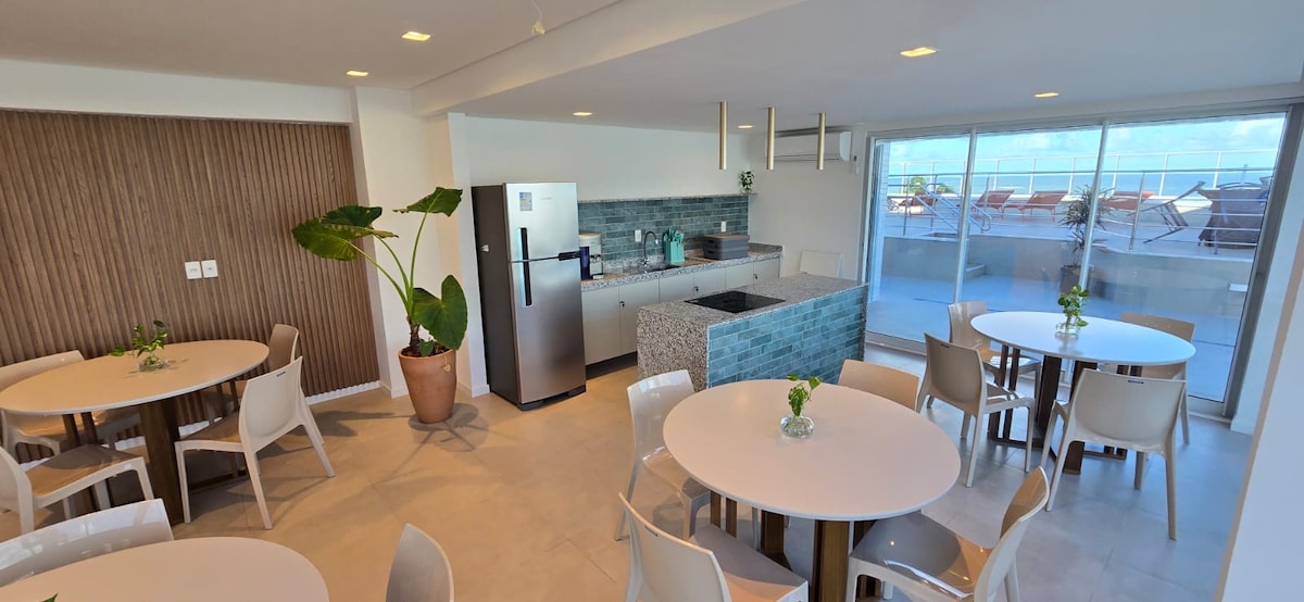 Bem-vindo! Apartamento de um quarto com espaço moderno e aconchegante na orla de Tamandaré, em frente às piscinas naturais e no melhor trecho de mar. Completo e equipado, acomoda até 5 pessoas com conforto, oferecendo cozinha completa, ar-condicionado na sala e quarto, Wi-Fi, TV na sala e quarto e varanda com vista para o mar. O prédio conta com rooftop com piscina de borda infinita, um Café, Conveniência, churrasqueira, academia e lavanderia. Perfeito para relaxar e curtir o melhor do litoral.