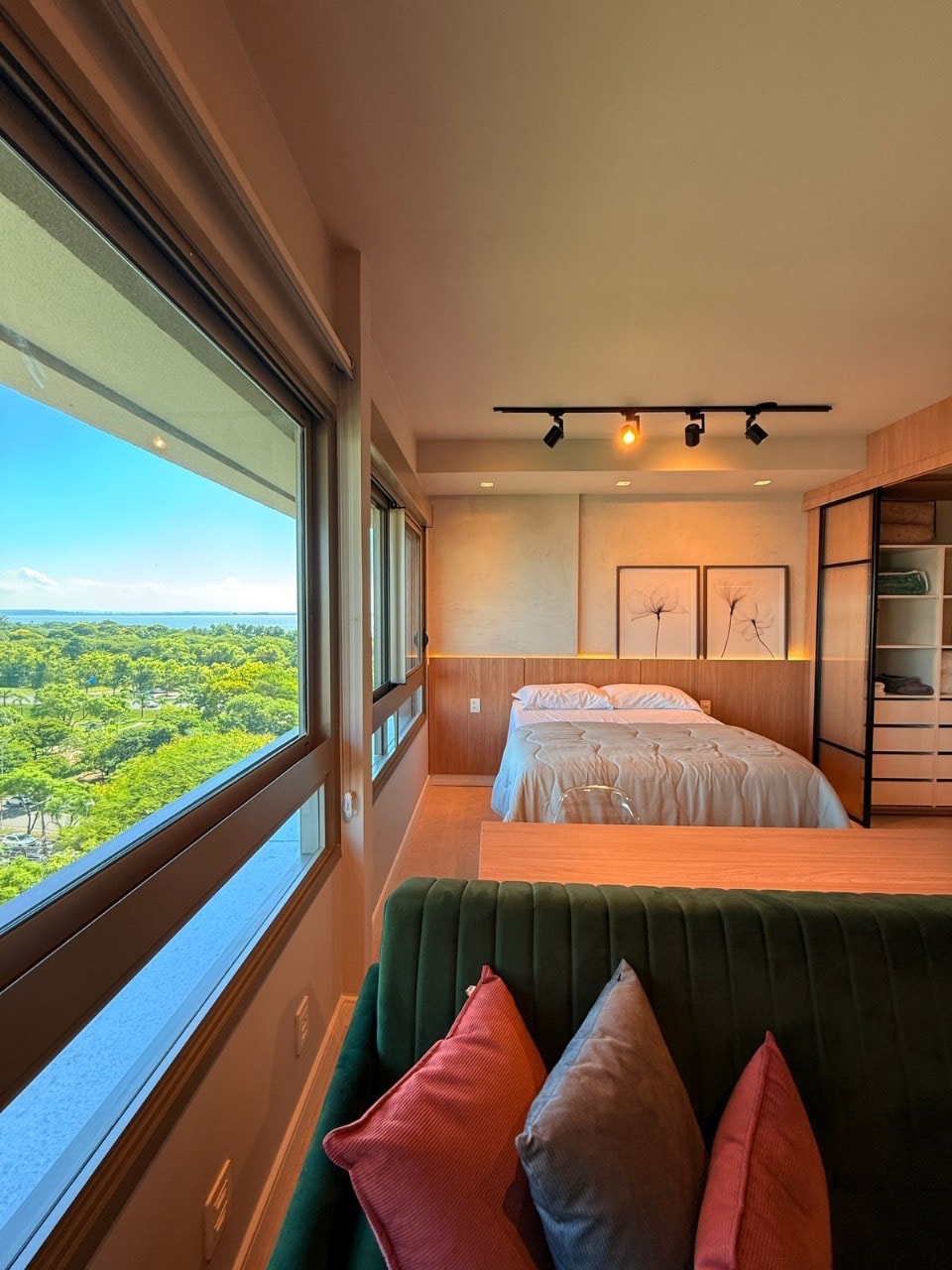 Brandneues Studio 43 qm in TREND CITY, fantastischer Panoramablick (16. Stock) auf Guaíba-See, Lake Shore und Marinha Park, Eigentumswohnung mit kompletter Infrastruktur, Concierge 24h, Parkplatz, Fitnessraum, 20 m beheizter Pool. Queensize-Betten, Platz zum Arbeiten mit Laptop, warme und kalte Klimaanlage 24.000, Smart-TV 50, Kabelfernsehen HD mit 250 Kanälen, WLAN 250 Mbit/s, Grillgrube, Waschmaschine und Trockner, Bügeleisen, Fön, Mikrowelle, Airfryer, Tag und elektronisches Schloss.
