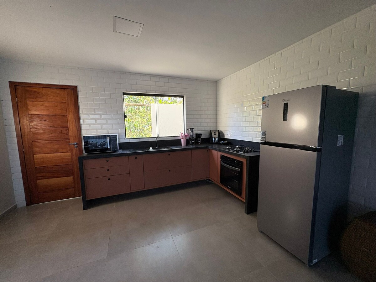 Es ist ein ruhiger und stilvoller Ort, 200 Meter vom Strand entfernt, inmitten der einheimischen Vegetation! Wir sind LGBTQIAP+ freundlich und da wir uns vom Zentrum der Gemeinde entfernt befinden, genießen wir Ruhe, Frieden und Privatsphäre, aber nur fünf Minuten vom Trubel entfernt! Die Suite verfügt über eine Hängematte zum Ausruhen, ein Queensize-Bett und eine Küche, die mit allem ausgestattet ist, was Sie für die Zubereitung Ihrer Mahlzeiten benötigen. Das Badezimmer verfügt über reservierte Plätze, die Ihre Privatsphäre garantieren. Entspannen Sie sich in diesem Raum!