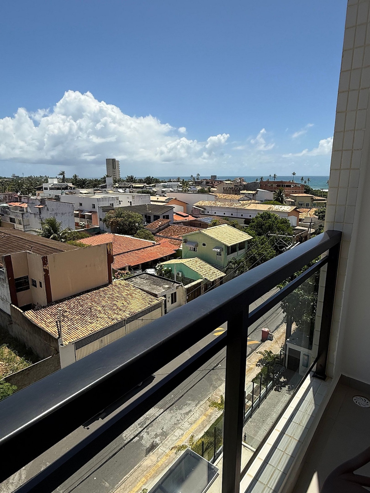Apartment mit Meerblick in der Wohnung direkt neben dem Strand. Ideal zum Entspannen mit Freunden, Familie oder allein. Schlafzimmer mit Klimaanlage; Großes Badezimmer; Schlafsofa und Esstisch im Wohnzimmer; luftiger Balkon; integrierte Küche mit Mixer, Kochgeschirr und Geschirr. WLAN verfügbar (Internet-Glasfaser 30 Mega) - Toll für Homeoffice-Mitarbeiter. Beste Lage in Vilas: Am Strand, 8 km vom Flughafen SSA und 5 km vom Zentrum Lauro de Freitas entfernt.