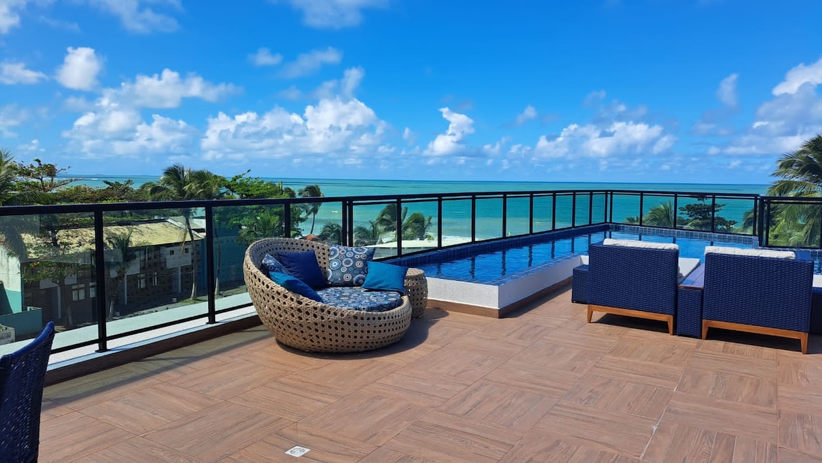 ✔️Flat no 3° Andar em frente ao mar, a 20 passos das areias da Praia e apenas 9 minutinhos caminhando até a Famosa Rua das Sombrinhas, que fica no Centrinho (Vilinha) de Porto de Galinhas. ✔️Varanda privativa com vista para o mar, ar condicionado, smart tv 55", piscina, espaço gourmet e academia além de 1 vaga de garagem. ✔️Ideal para até 3 pessoas, roupa de cama e toalhas de banho são fornecidas. ✔️Assista ao nascer do sol sem sair da cama, em dias de céu aberto e conforme a estação do ano.