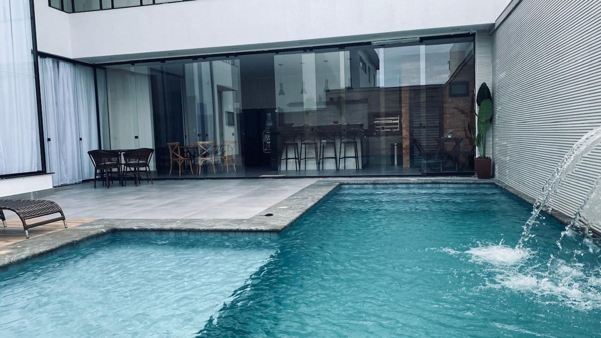 Genießen Sie unvergessliche Momente, perfekt für Familien und Freunde, es hat alles, was Sie zum Entspannen und Spaß haben brauchen: 3 gemütliche Zimmer (zwei davon mit eigenem Bad), Klimaanlage; Spielzimmer mit Tischfußball, Billardtisch, Tischtennis und einer kleinen Bar für eine lebhafte Happy Hour; Erstaunlicher Außenbereich mit kristallklarem Pool, Grillplatz und Platz zum Genießen der Sonne oder der Abendbrise; Ausgestattete Küche und geräumiges Wohnzimmer für Momente der Ruhe; Nur wenige Meter vom Strand entfernt