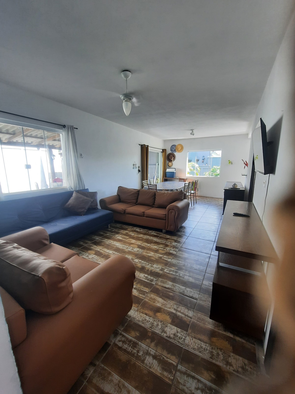 Triplex em Praia de Leste, perto do mar! No térreo, tem 2 vagas de garagem cobertas, sala de TV, jantar e cozinha conjugados com ilha e churrasqueira, além de lavabo e tanque de lavar roupas no fundo. No 2º piso, uma suíte com cama queen, 2 quartos com cama de casal, com 2 colchão de solteiro extra e um banheiro completo. No 3º piso, um quarto e um terraço com guarda-sol, bancos e fireplace. Ideal para relaxar com estilo e conforto! TRAZER ROUPAS DE CAMA E BANHO