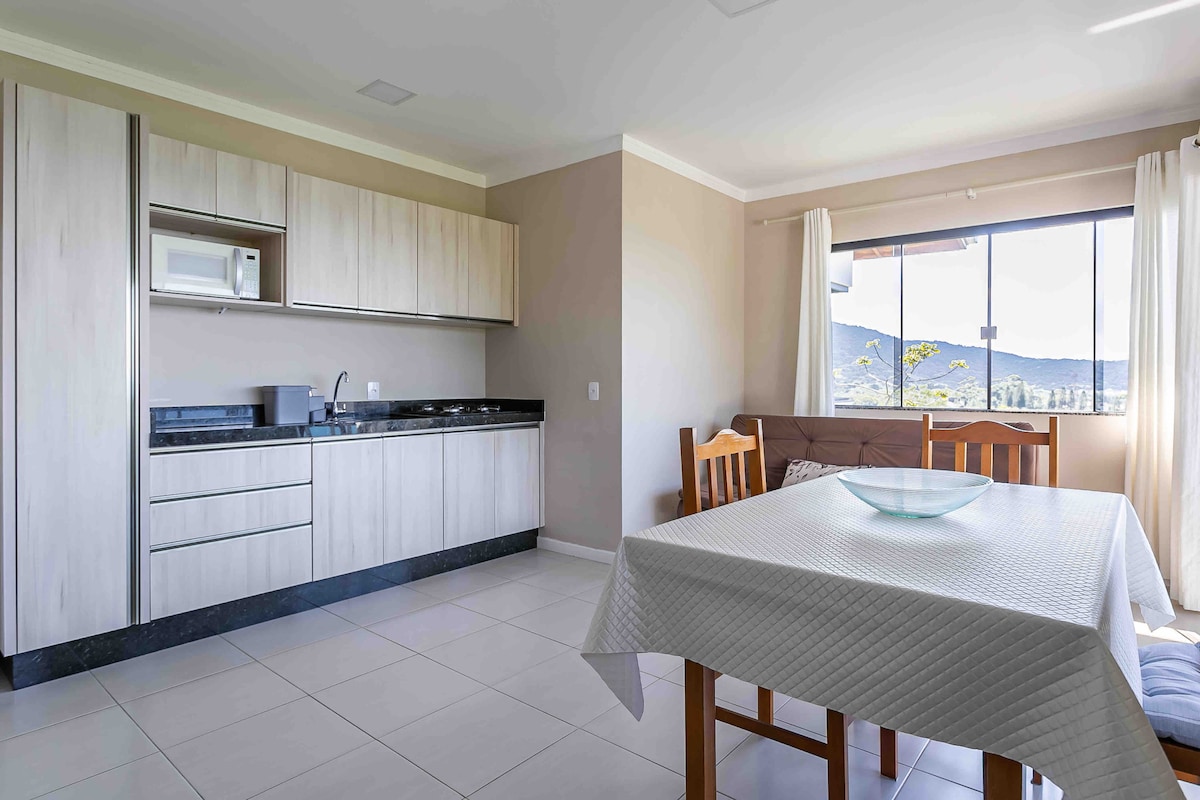 Lounge Apartment, located in Brava Beach and 10 minutes from Balneário Camboriú. The location is perfect. Only 5 blocks from Beach. Close all parties and restaurants. Condo with complete infra, Pool, Gym, Steam and 4 Barbecues. The apartment has Mountain-facing Jacuzzi with hydro and chromotherapy. Ideal for relaxing or take a romantic time. It has 58 'smart TV in the living room and 40' in the bedroom. Full kitchen. Machine washes and dries. You will love this place.