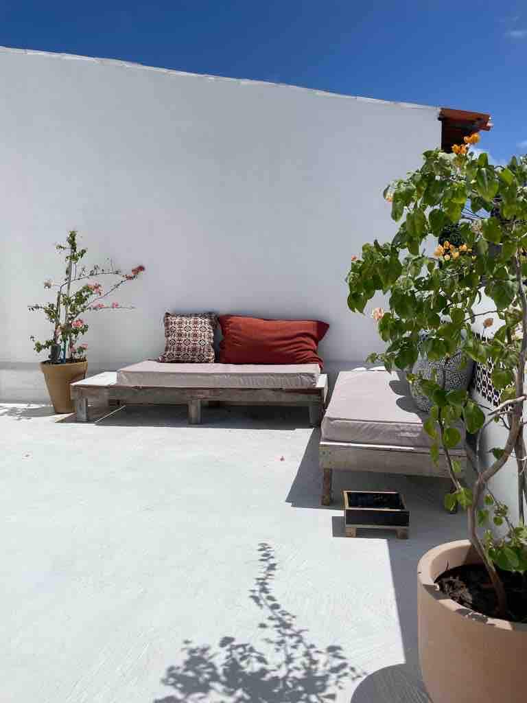 Casa estilosa, com obras de arte, numa vila tranquila e segura a 15min da Praia de Iracema. É um sobrado com 130m², com 2 banheiros, 2 quartos (sendo 1 mezanino grande com cama de casal, banheiro e armário; e 1 quarto), sala, cozinha equipada e terraço - para até 4 pessoas. A Vila Nanan está numa rua sem saída, com portão, câmera e vigilância. (há descontos para estadias maiores). Espaço inteiro privativo. Festas e eventos não são permitidas.