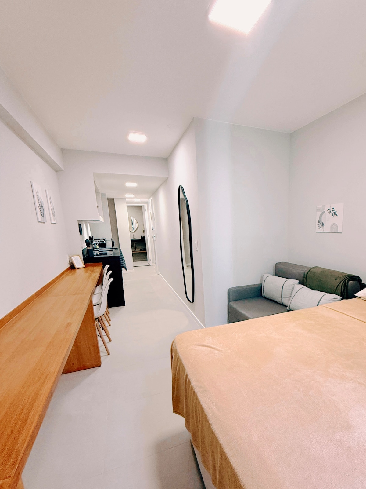 Ruhig und stilvoll! Erlebe ein Eintauchen in Rio de Janeiro in diesem gemütlichen und 100 % Carioca-Studio, mit dem Thema der Stadt; weniger als 100 m von Praia do Leme entfernt (du kannst das Meer des Fensters sehen!), einem der Lieblingslieder der Einheimischen und neben den besten Restaurants, dem rund um die Uhr geöffneten Markt und anderen Versorgungseinrichtungen der Nachbarschaft. Das Bett ist Queensize-Doppelbett und das Schlafsofa ist das bequemste