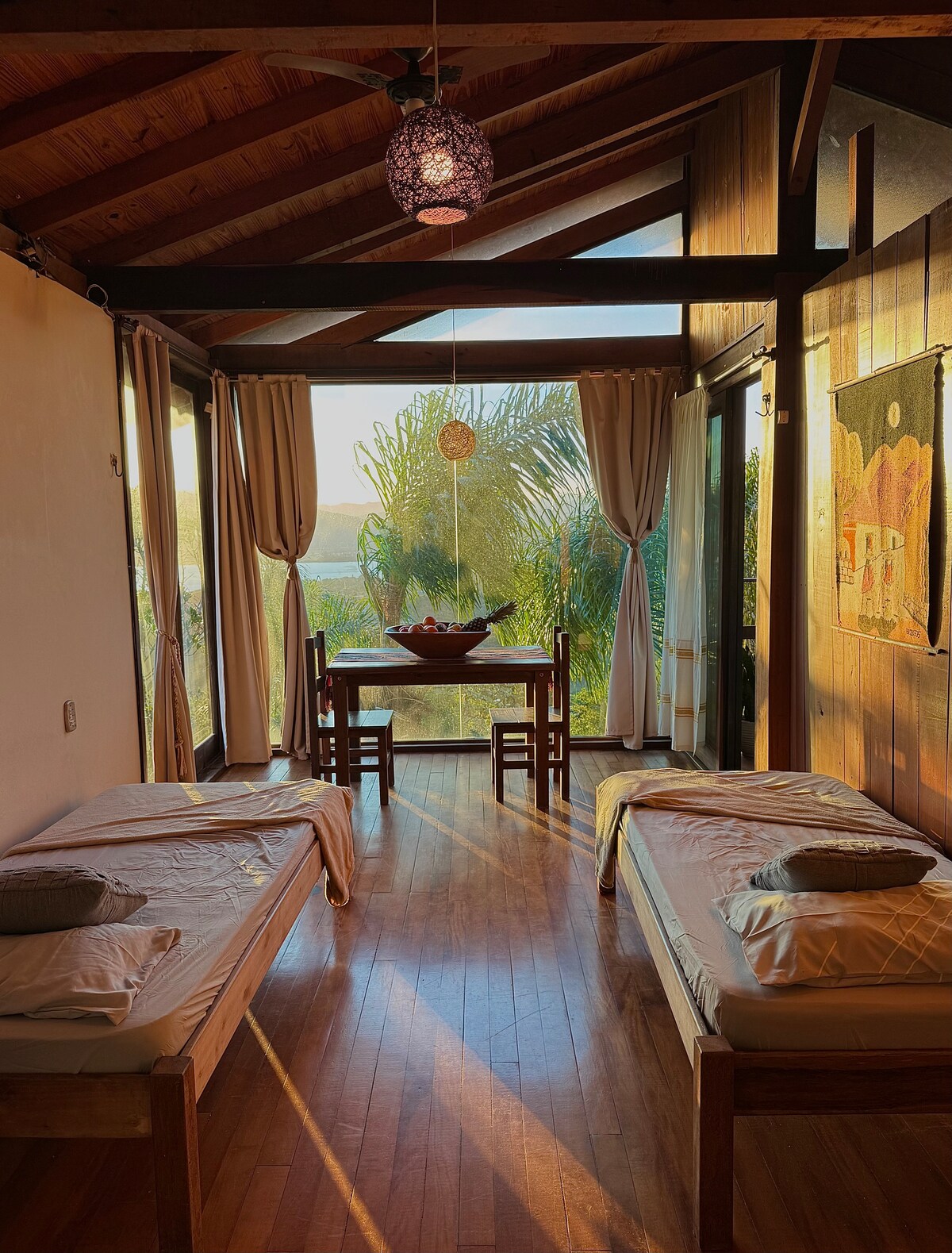 Cabana charmosa na Praia do Rosa A tão só 5 minutos a pé do Centrinho (350mtrs) e 10/15 minutos a pé da praia (800mtrs). Ar condicionado e TV smart, cozinha bem completa, micro-ondas, cafeteira, banheiro privativo, wifi, estac. privativo (sem custo). *Temos diferentes tipos de acomodações, cabanas superiores com vista ao vale, cabanas com vista ao jardim. Consulte a disponibilidade ao reservar. A pousada tem piscina e churrasqueira compartilhada. Moro no local para dicas ou assistência.