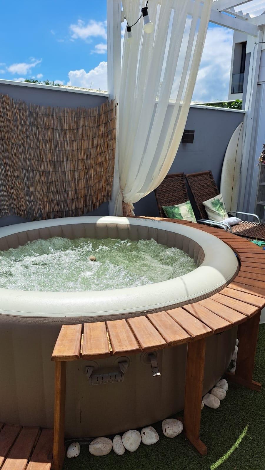 Viva dias únicos em Floripa! 🌴✨ Desfrute de um espaço privativo e aconchegante, perfeito para relaxar. Localizado a 8 min do aeroporto, 15 min do Centro e 9 km da Praia do Campeche. Acomode-se na suíte climatizada, prepare suas refeições na cozinha completa (com forno, micro-ondas e utensílios), desfrute de um delicioso café da manhã e aproveite a área externa exclusiva com spa de hidromassagem aquecido. Conforto, privacidade e praticidade para uma estadia perfeita e ACONCHEGANTE! 🌊✨🏡