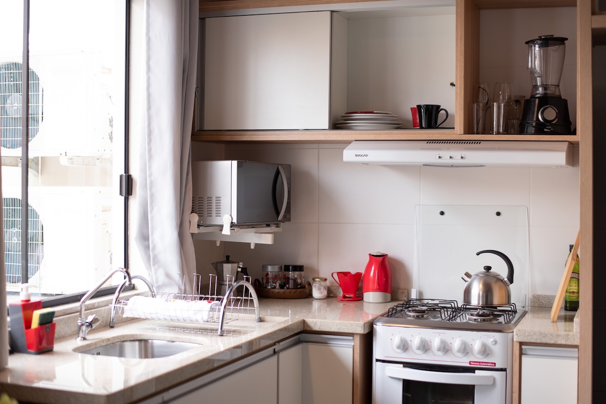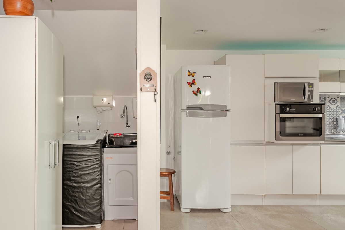 Komfortables und gemütliches Studio in einer Wohngegend, sehr gut gelegen. In der Nähe von UFSC und UDESC und 9 km von der Innenstadt entfernt. Ein ruhiger und ruhiger Ort, an dem du gut schlafen kannst. Es gibt auch einen Außenbereich, in dem du dich dich entspannen, einen Kaffee und ein Sonnenbad genießen kannst. Du wirst es lieben! Du erhältst eine voll ausgestattete Küche, ein Doppelbett, Dusche mit heißem Wasser, Kleiderschrank, Klimaanlage, WLAN, Kabel-TV, Kabel-TV, Bettwäsche, Decken, Handtücher und Heizung.